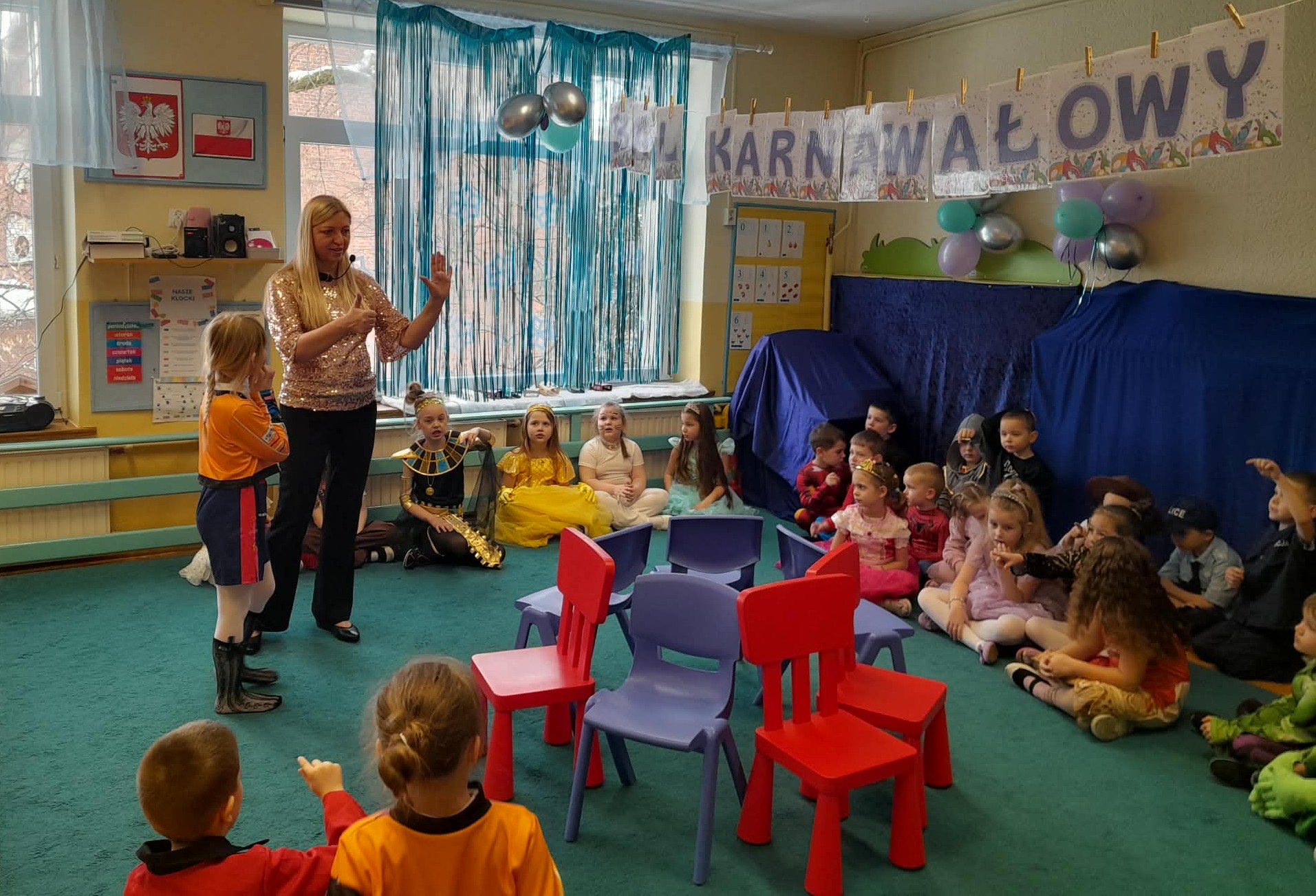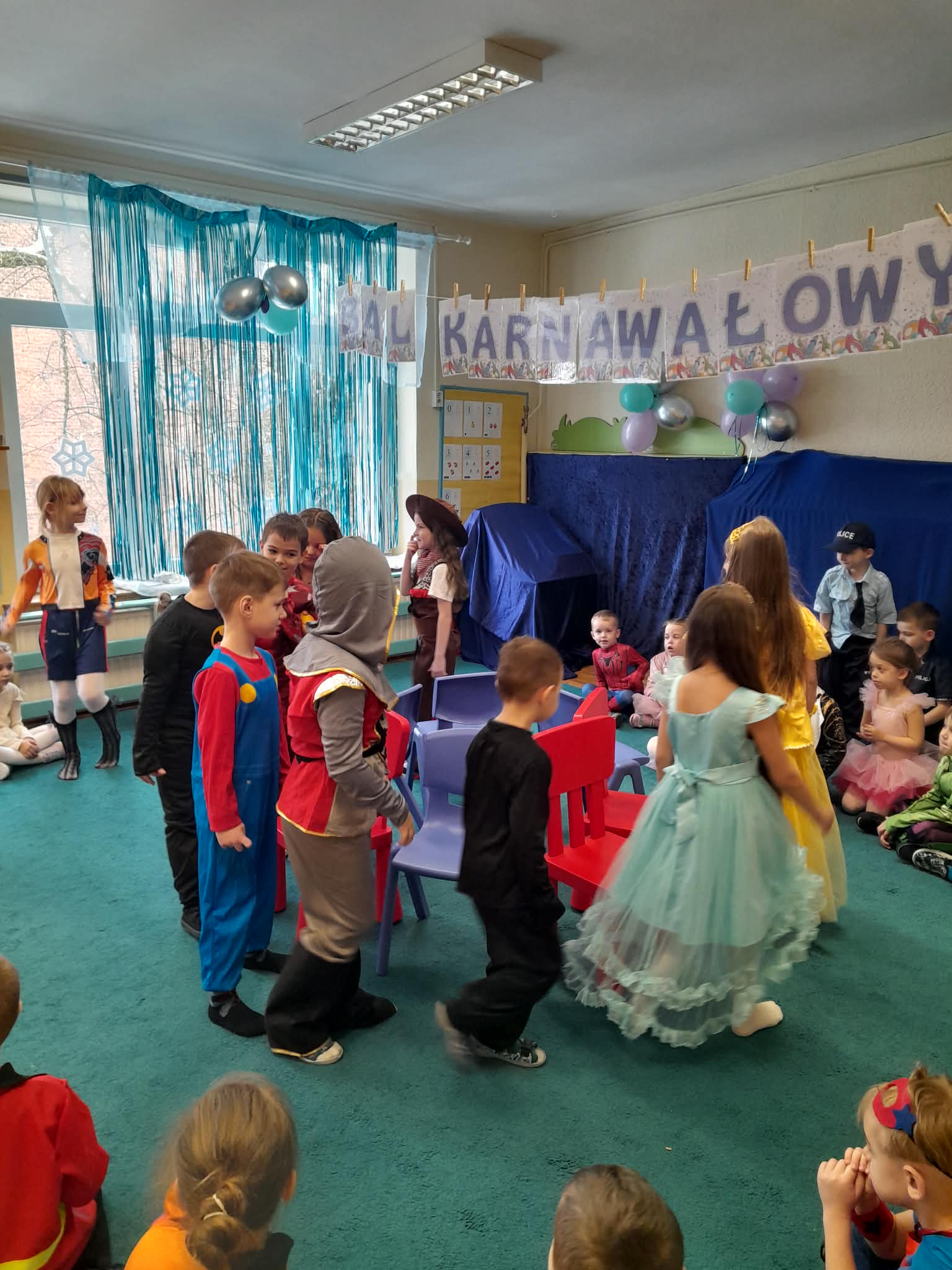 17 lutego br. wszystkie przedszkolaki bawiły się na balu karnawałowym. Piękne stroje karnawałowe pomogły im poczuć się wyjątkowo. Dzieci były przebrane za zwierzęta, policjantów, strażaków, piratów, ale najwięcej było postaci z ulubionych bajek. Tego dnia były tańce, zabawy integracyjne, dużo muzyki, śmieszne konkursy, wspólne zdjęcia i dużo, dużo radości. Więcej zdjęć pojawi się w zakładkach poszczególnych grup.
