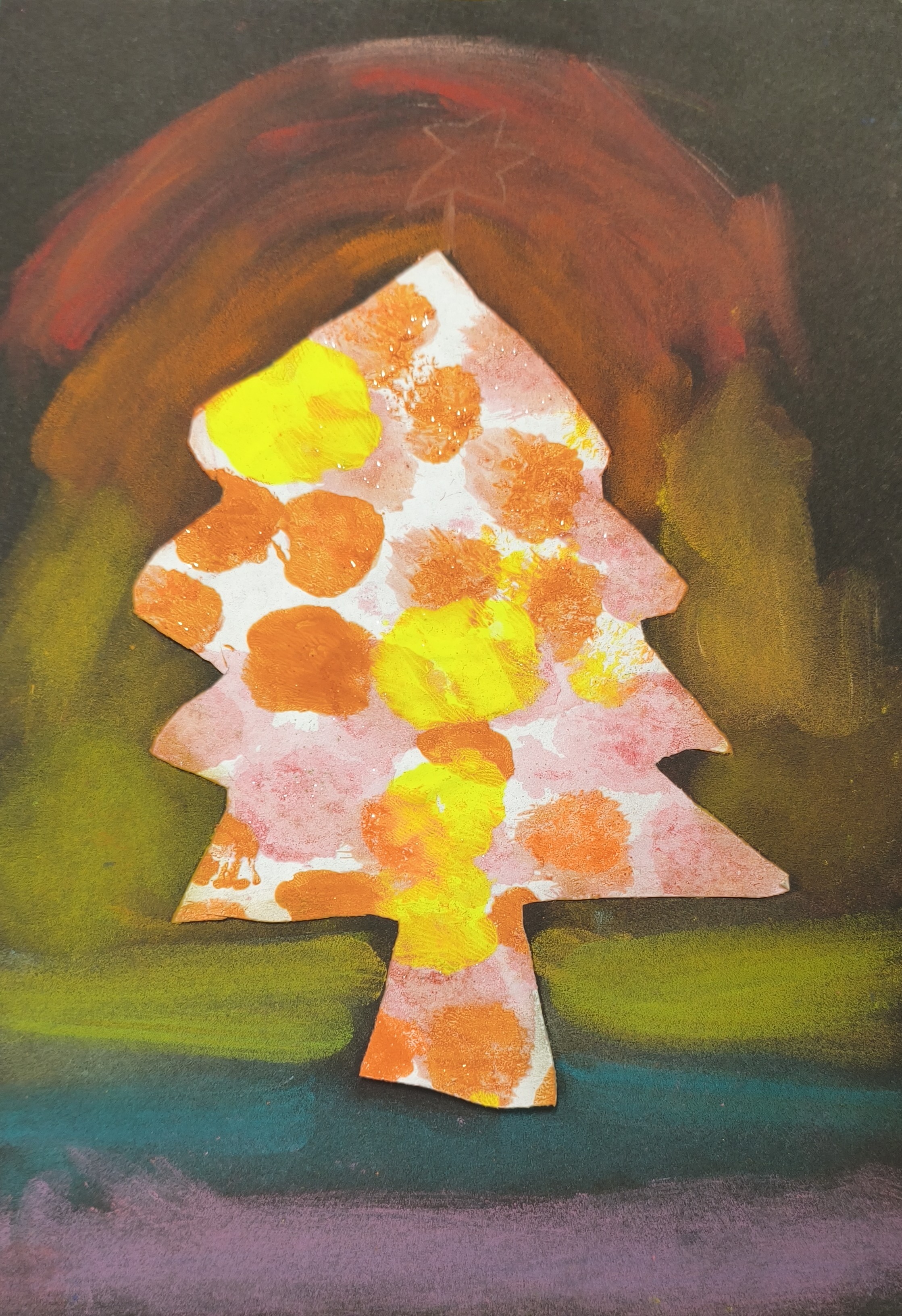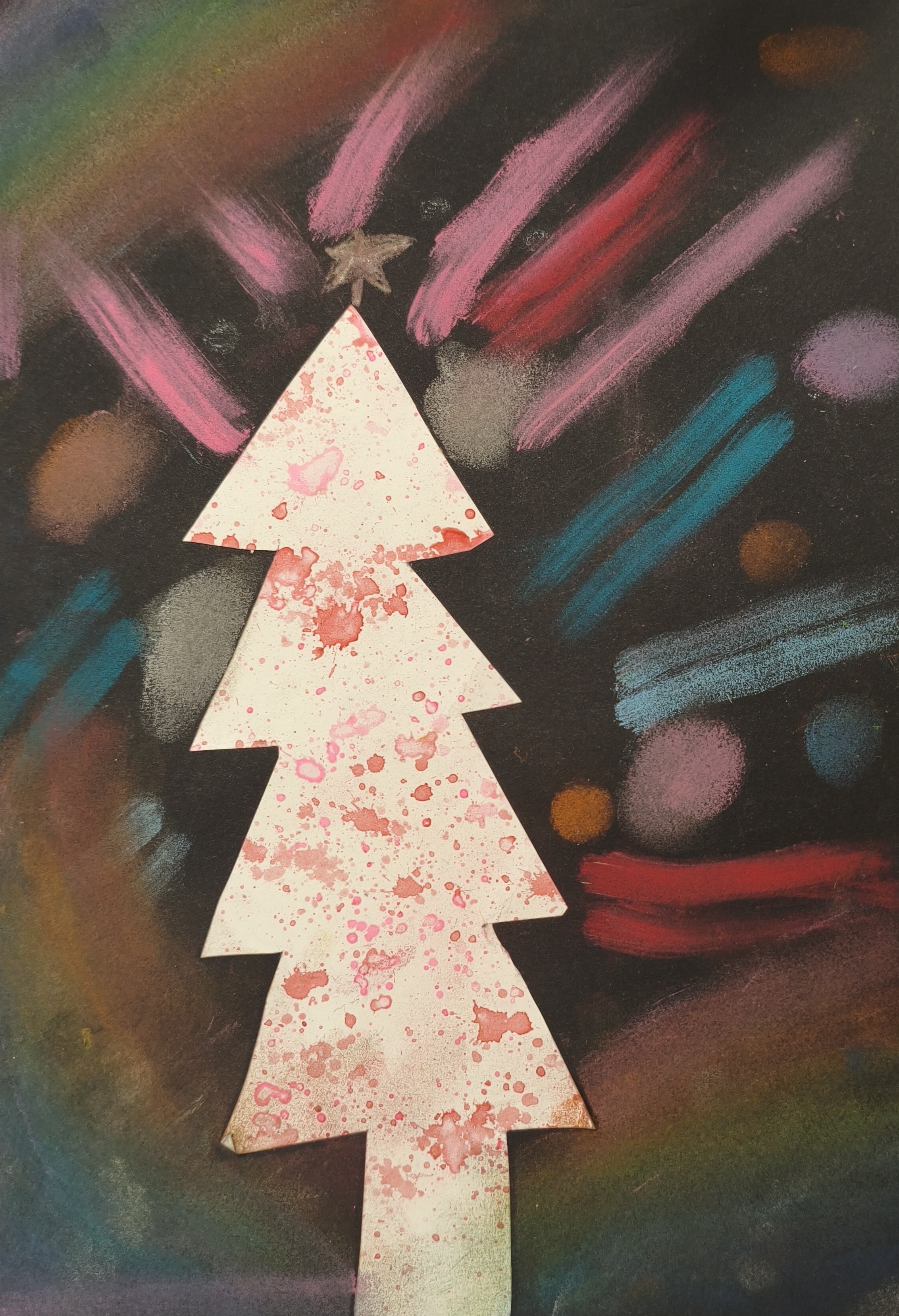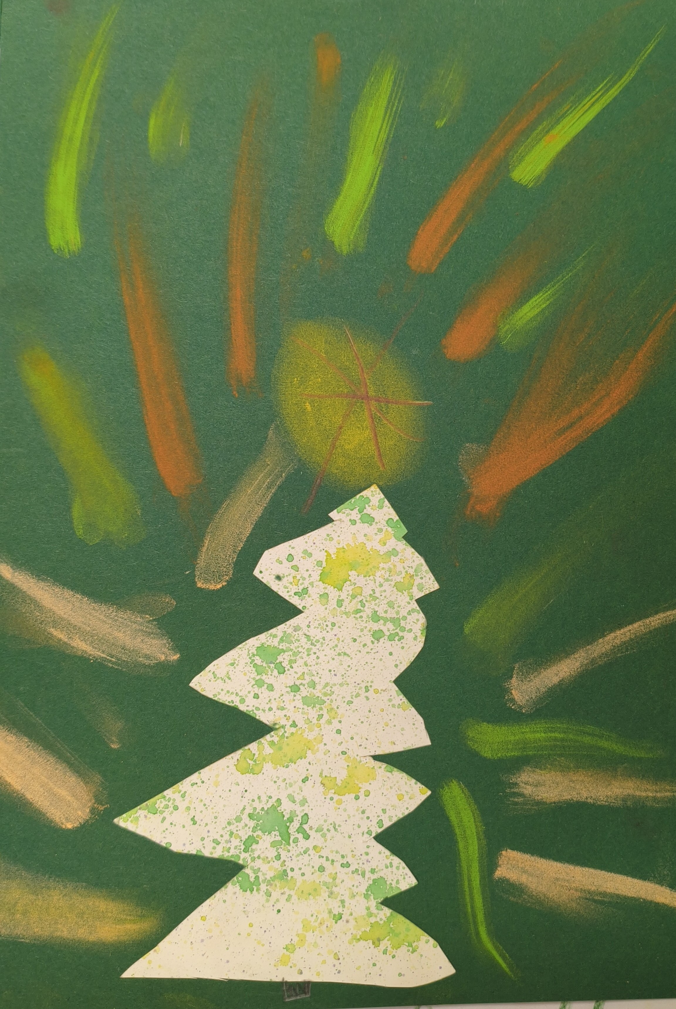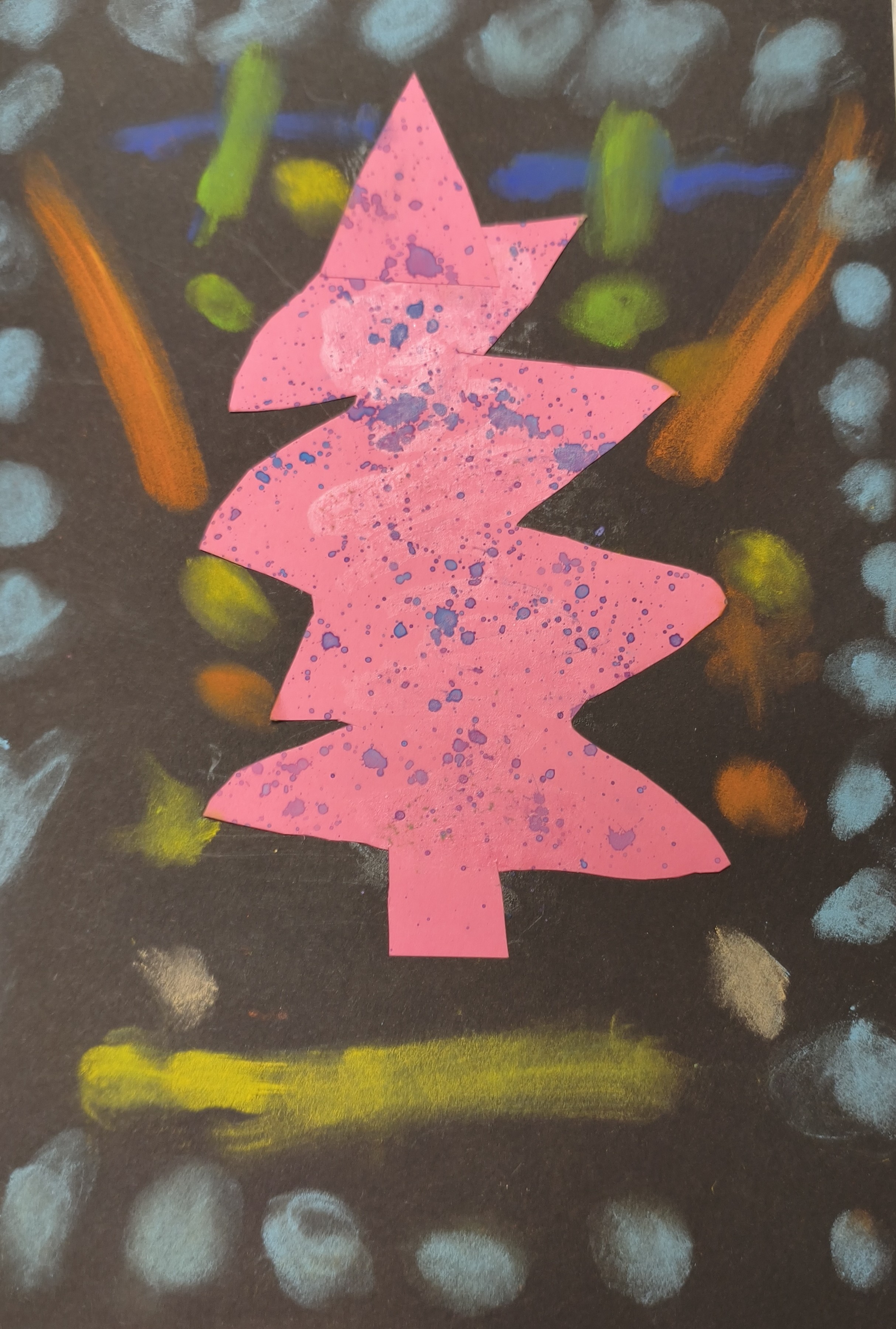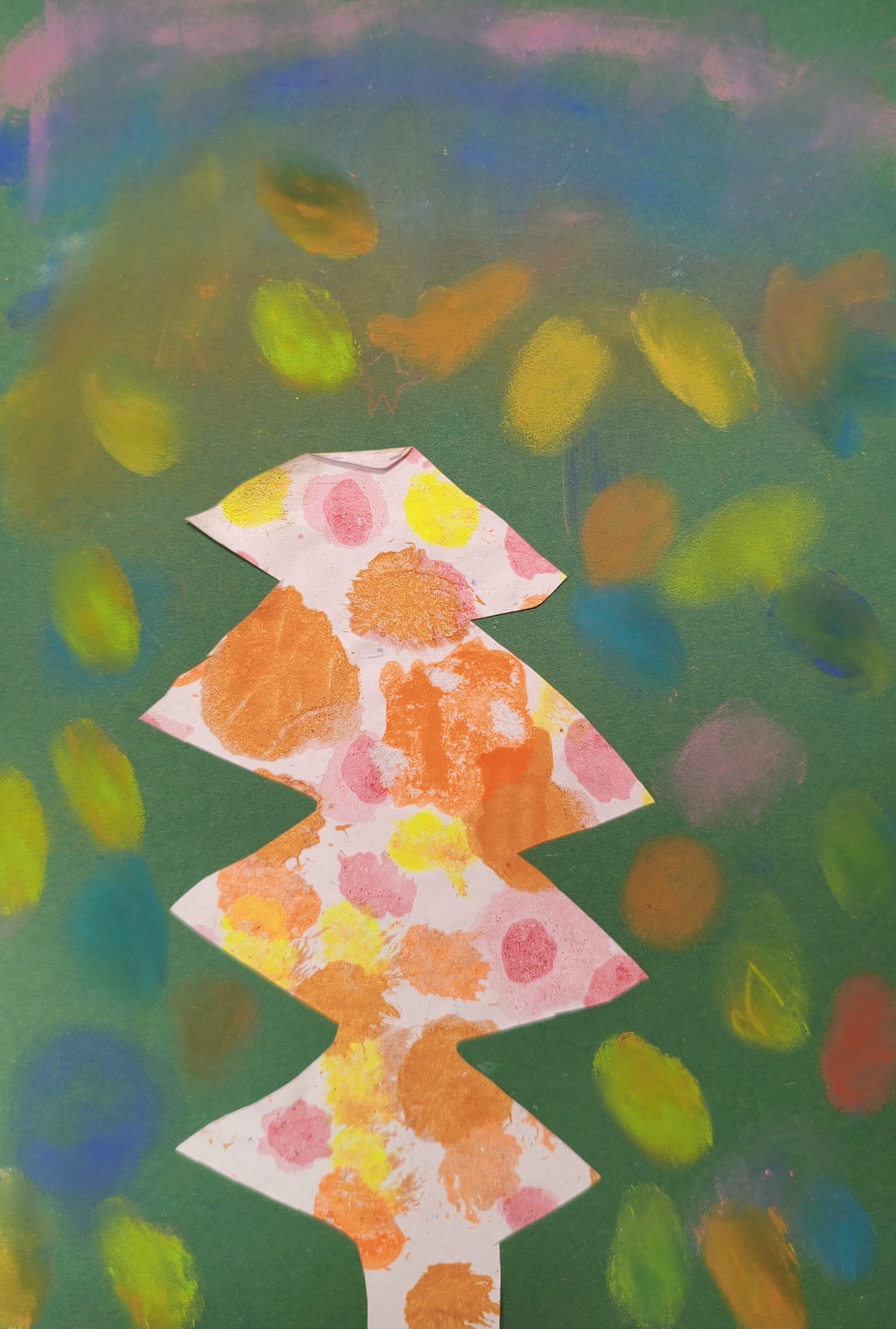 Papier kreatywny, wycinanie, pastela sucha, malowanie lub rozcieranie pyłkiem.