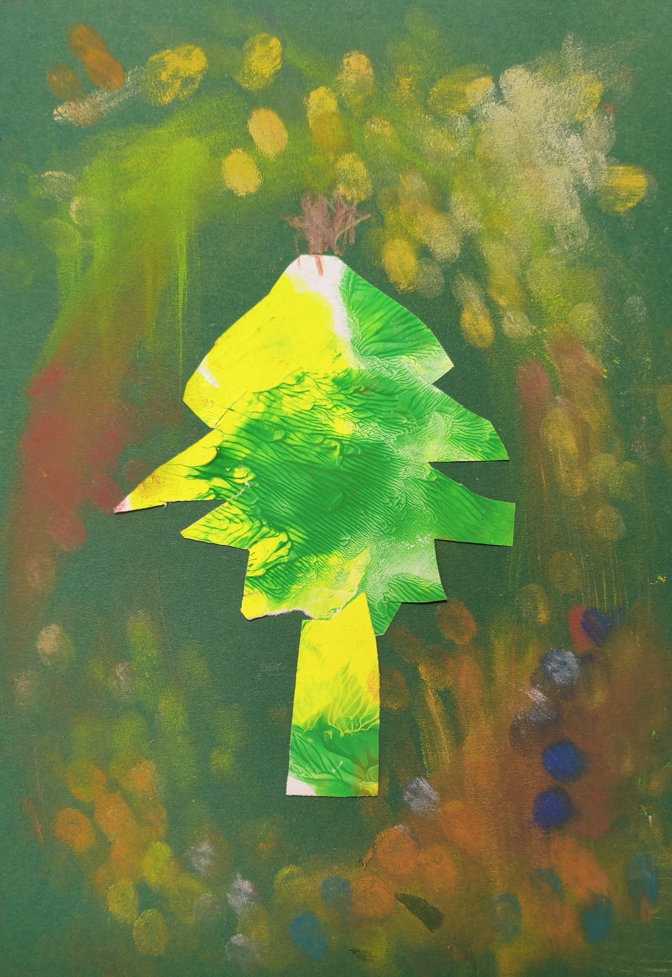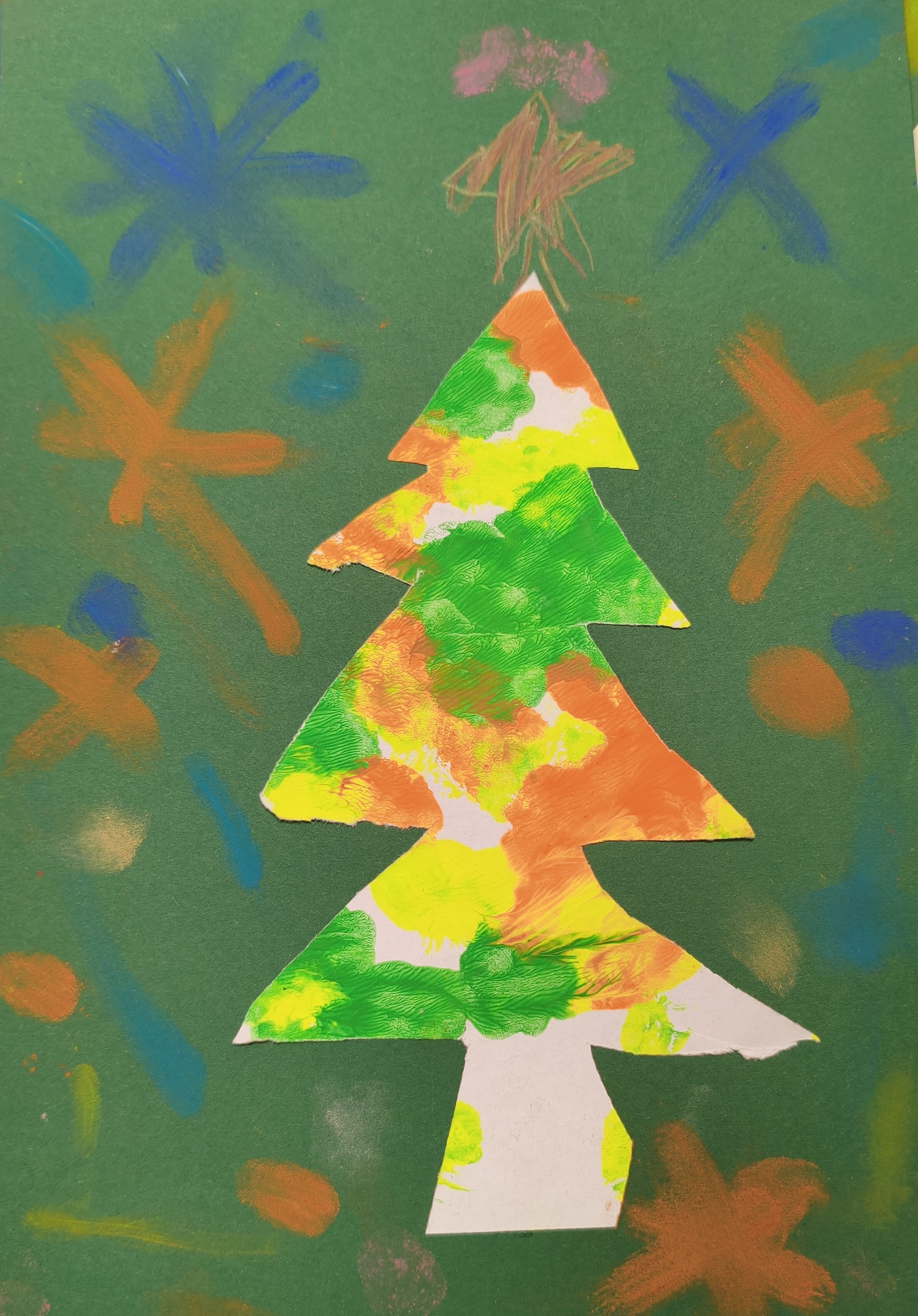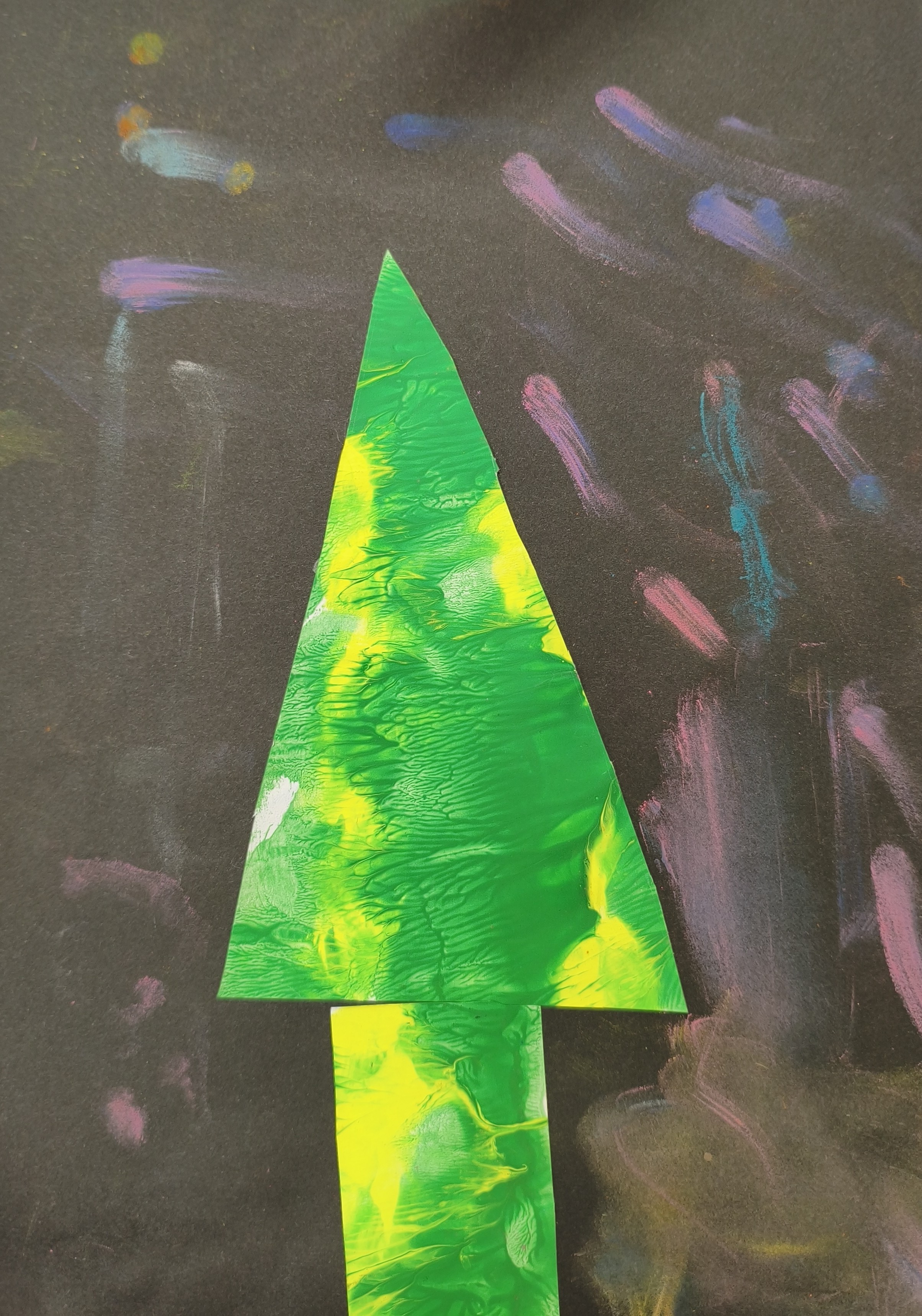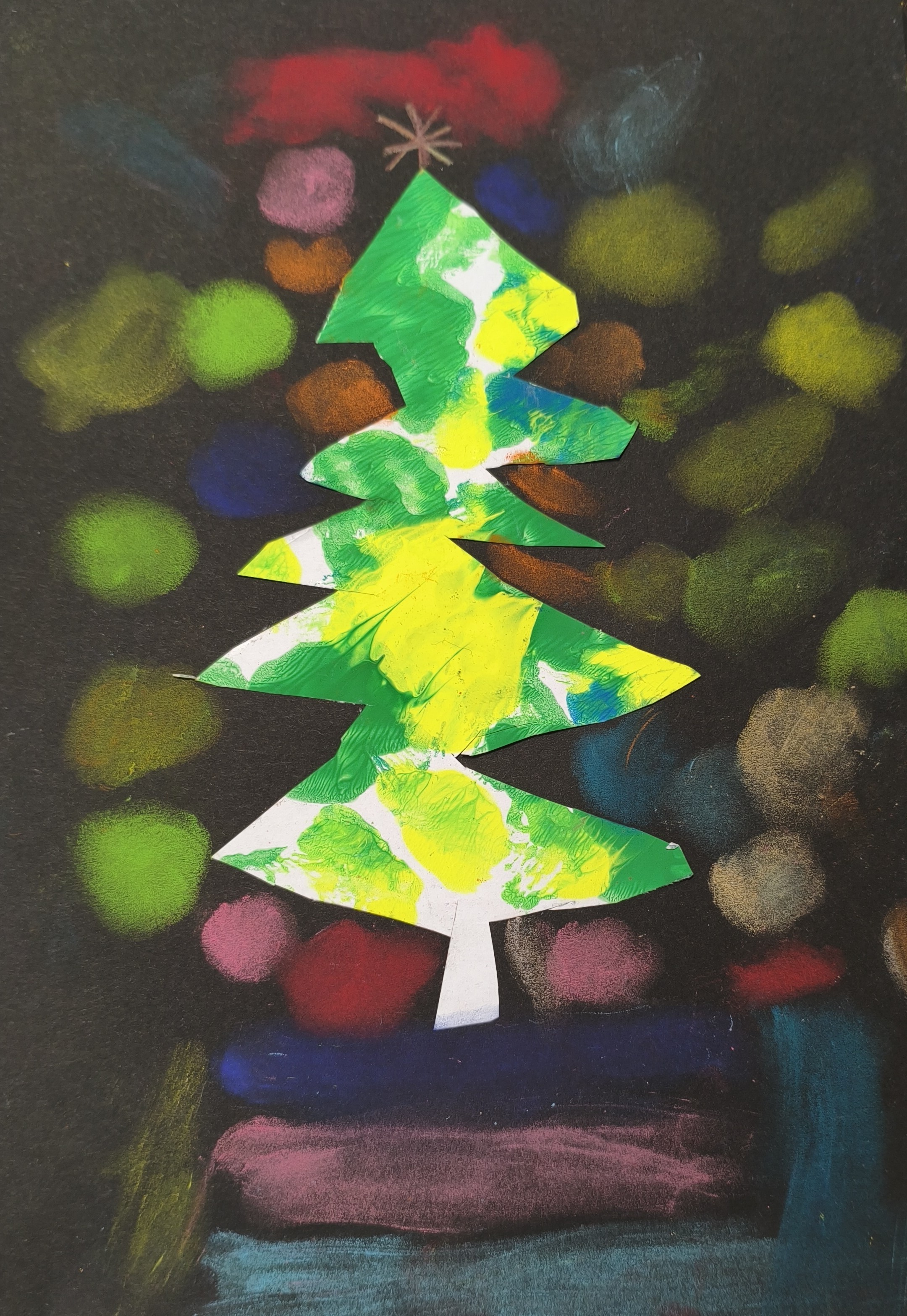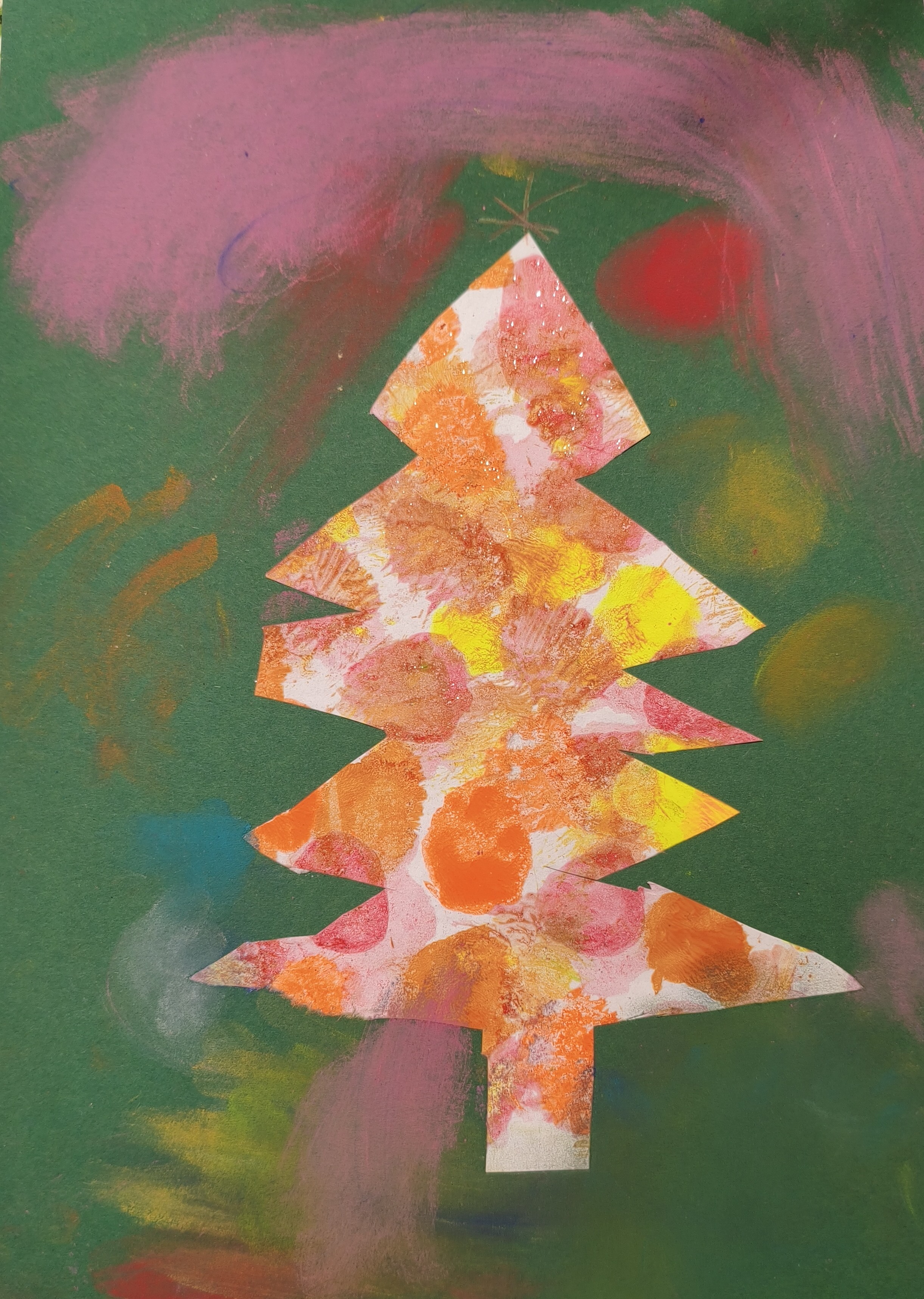 Papier kreatywny, wycinanie, pastela sucha, malowanie lub rozcieranie pyłkiem.