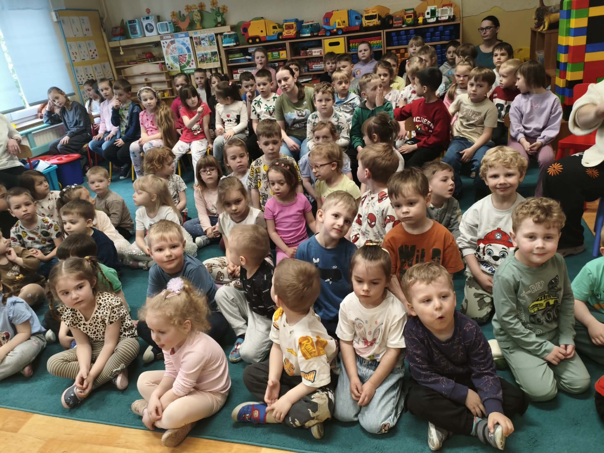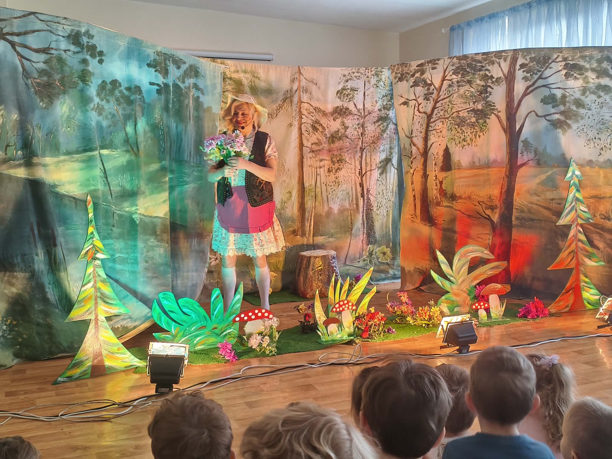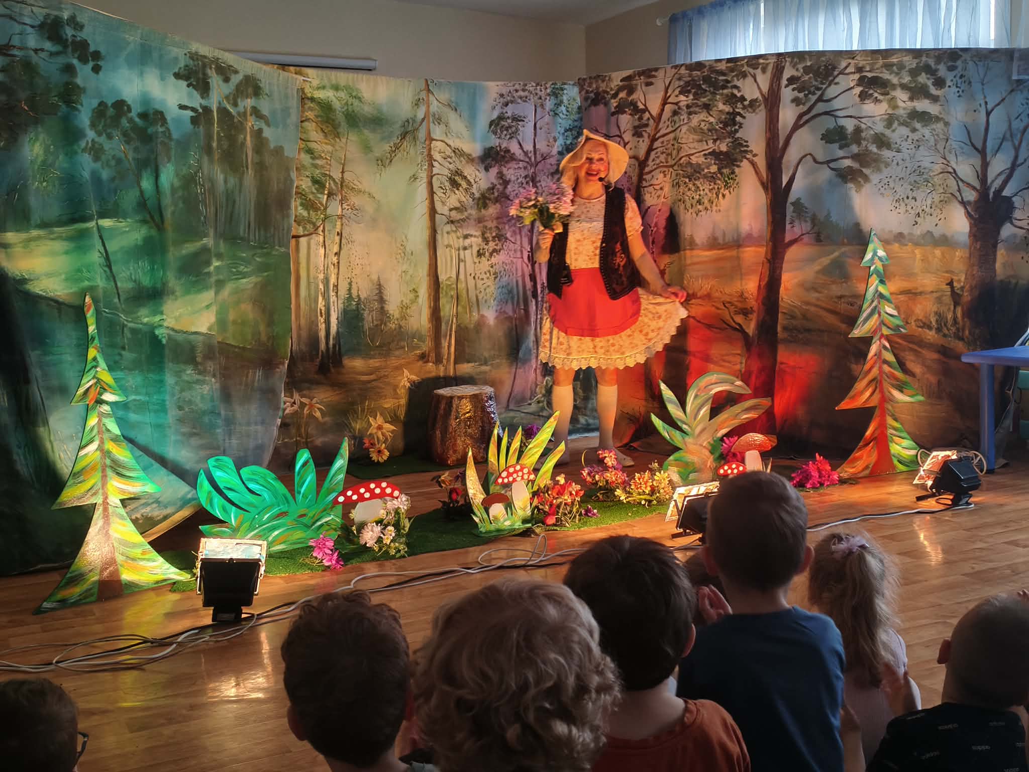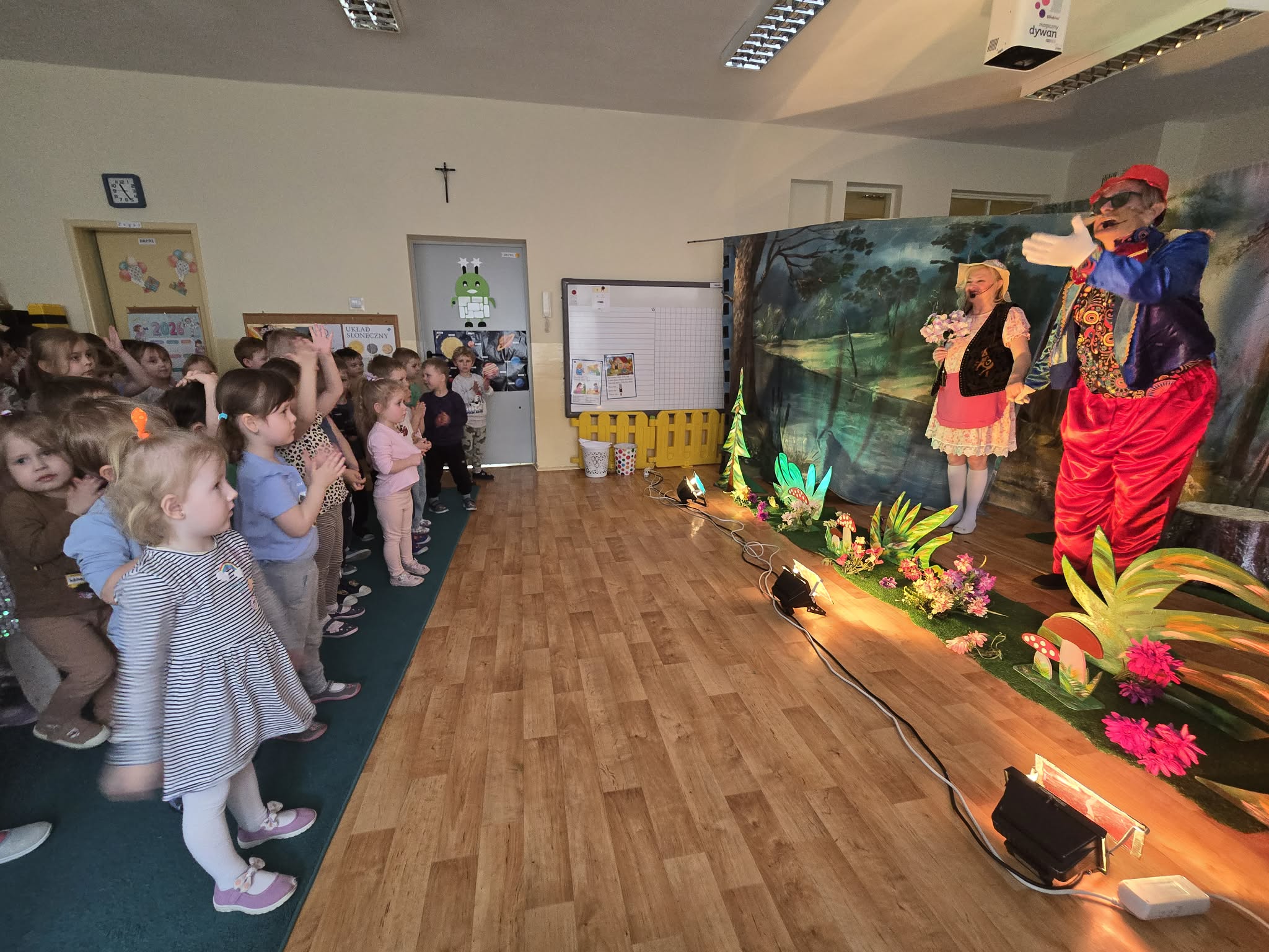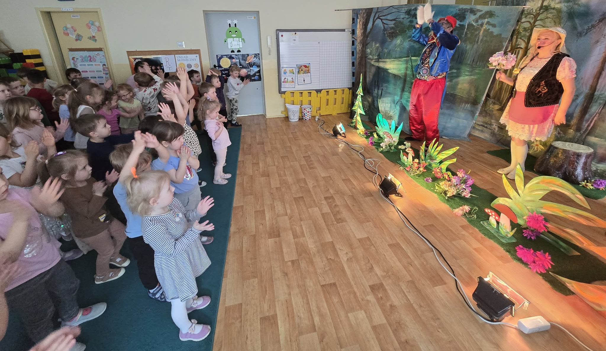 Dzieci podczas ogladania spektaklu obserwowały różne emocje towarzyszące aktorom - smutek, radość, strach oraz dostrzegają moc DOBRA, która wygrywa ze ZŁEM. Podczas tak magicznej podróży dzieci poznają zaczarowane zwierzątka: zajaczka oraz wilka. Aktorzy przyciągają zainteresowanie dzieci barwnymi kostiumami, śpiewem oraz bezpośrednim kontaktem, co bardzo podobało się przedszkolakom.