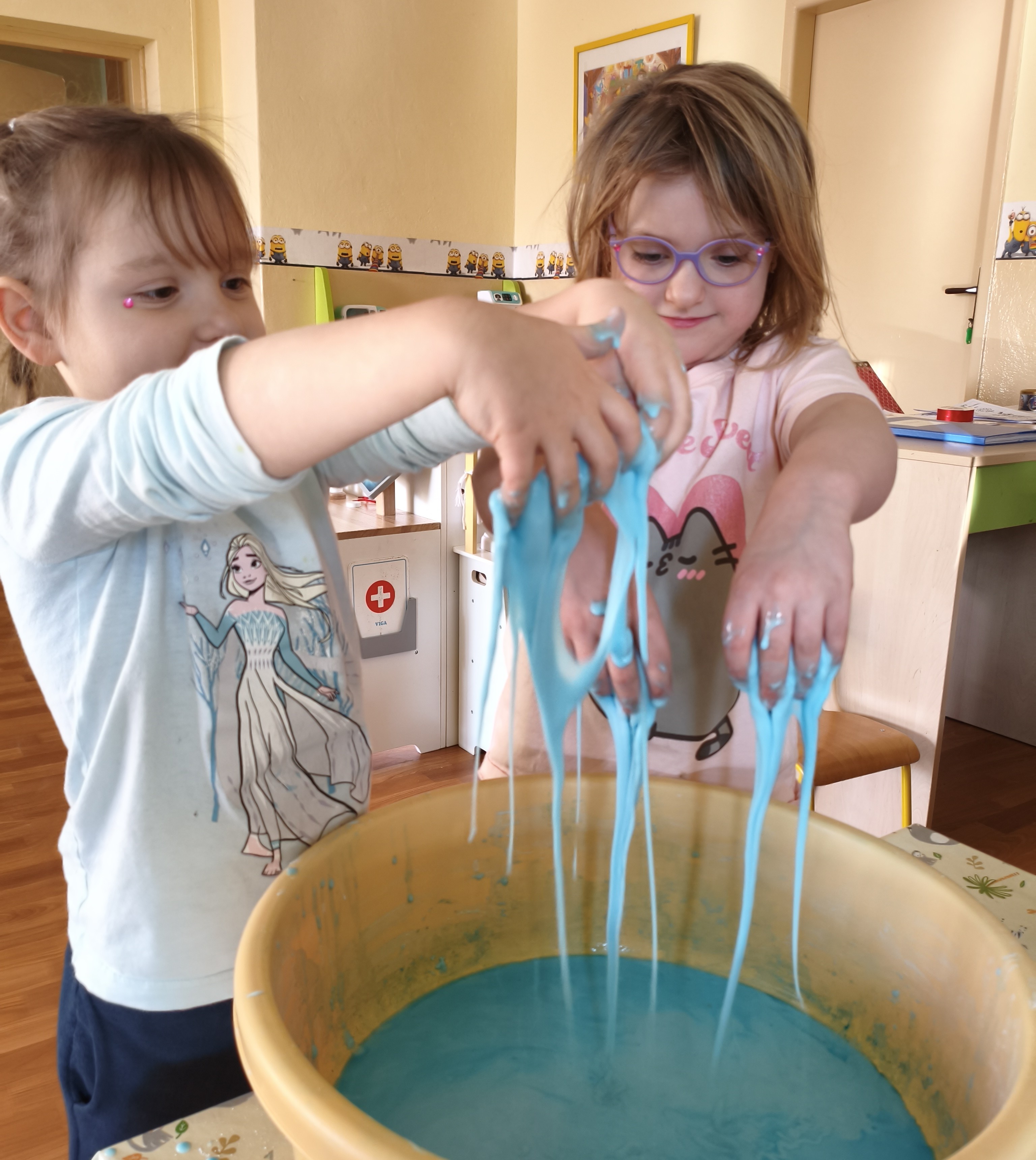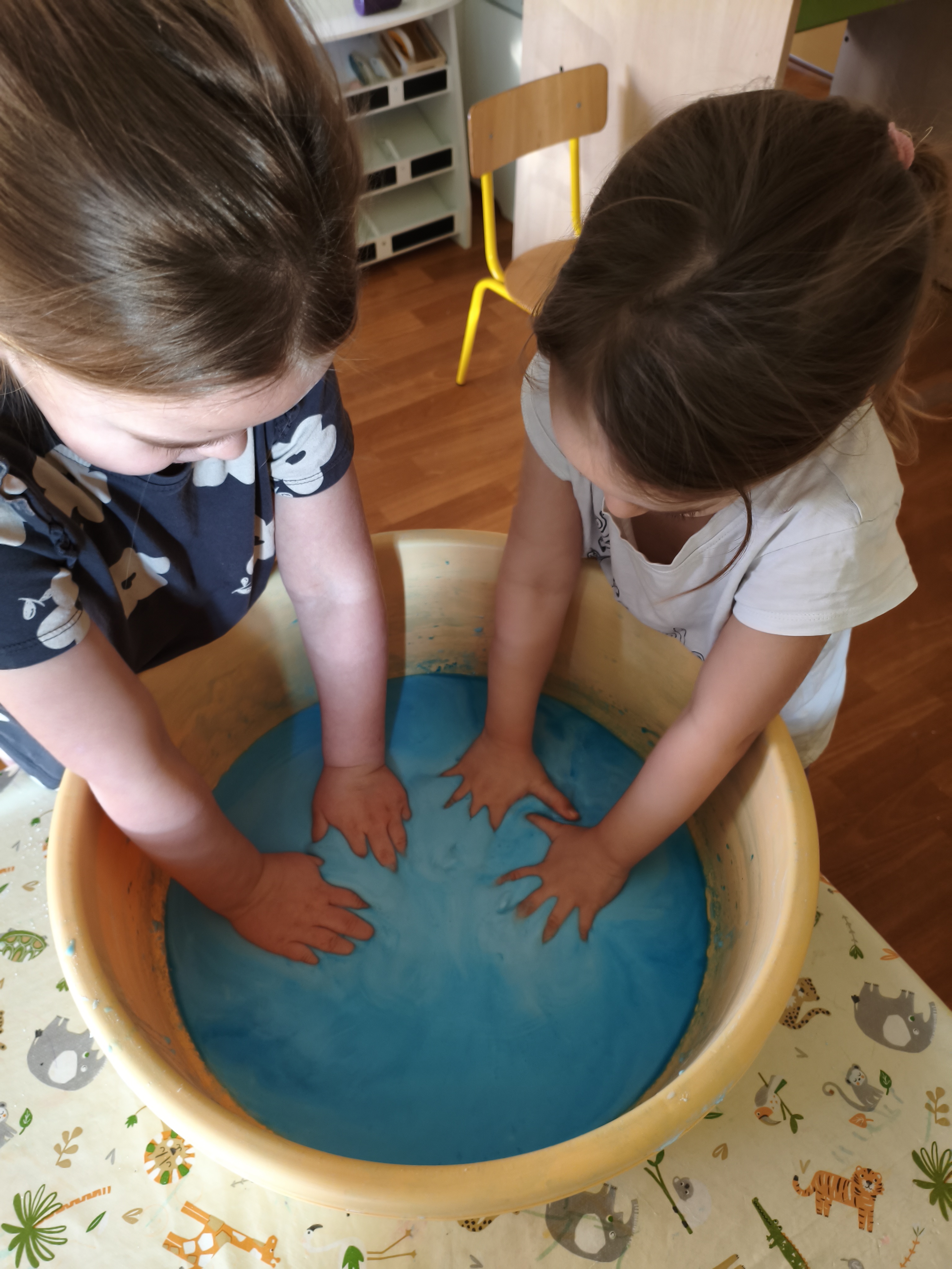 Mąka ziemniaczana + woda + farba do malowania w ulubionym kolorze = wspaniała zabawa.