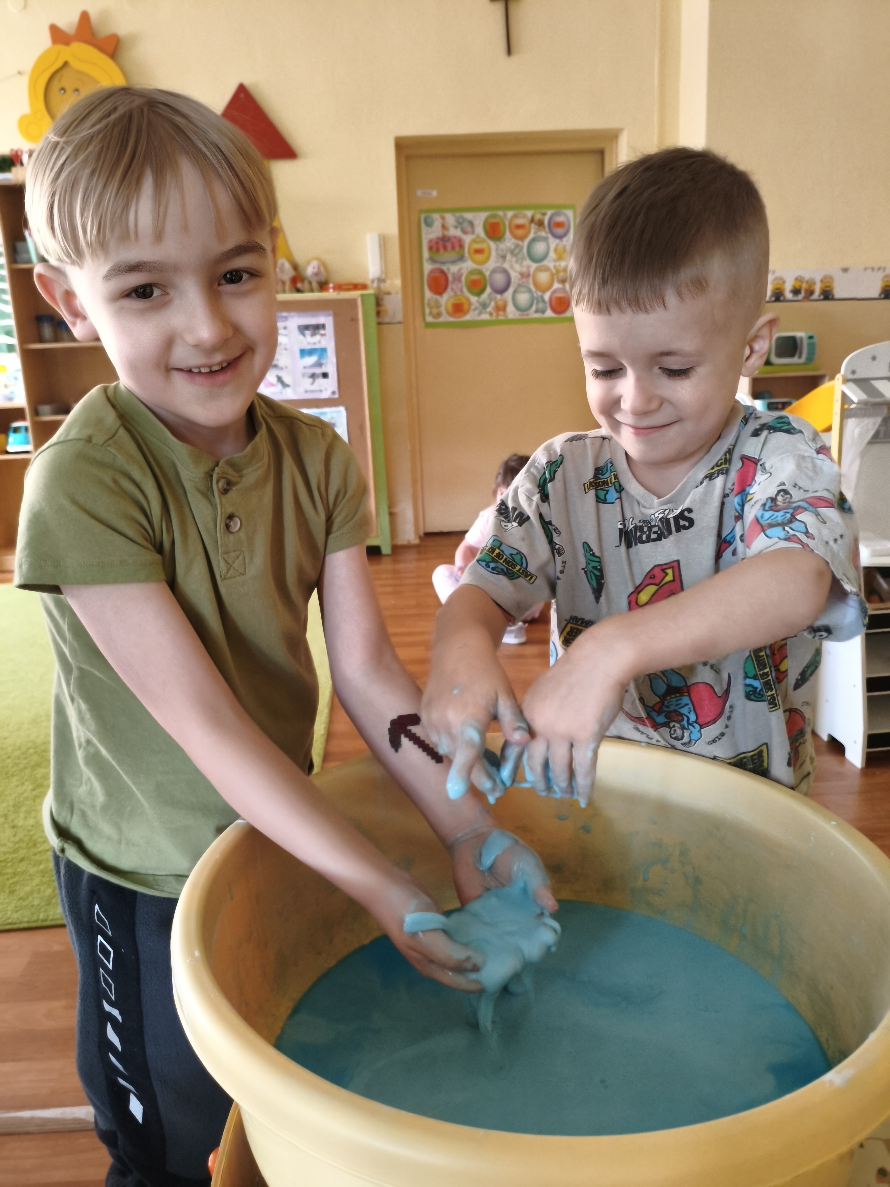 Zabawa masą sensoryczną pozwala się zrelaksować, zachęca do eksperymentowania i sprzyja nabywaniu nowych doświadczeń.