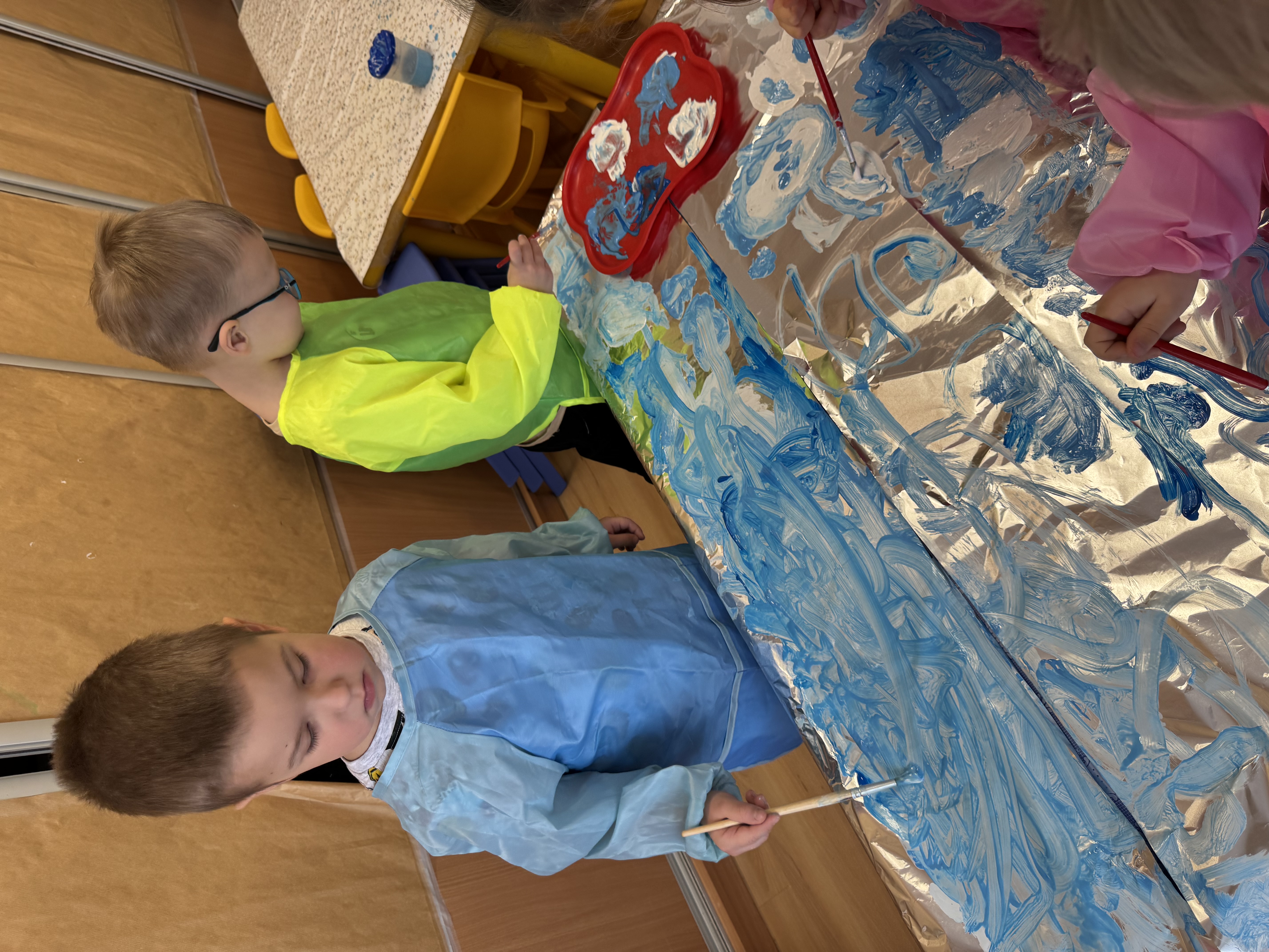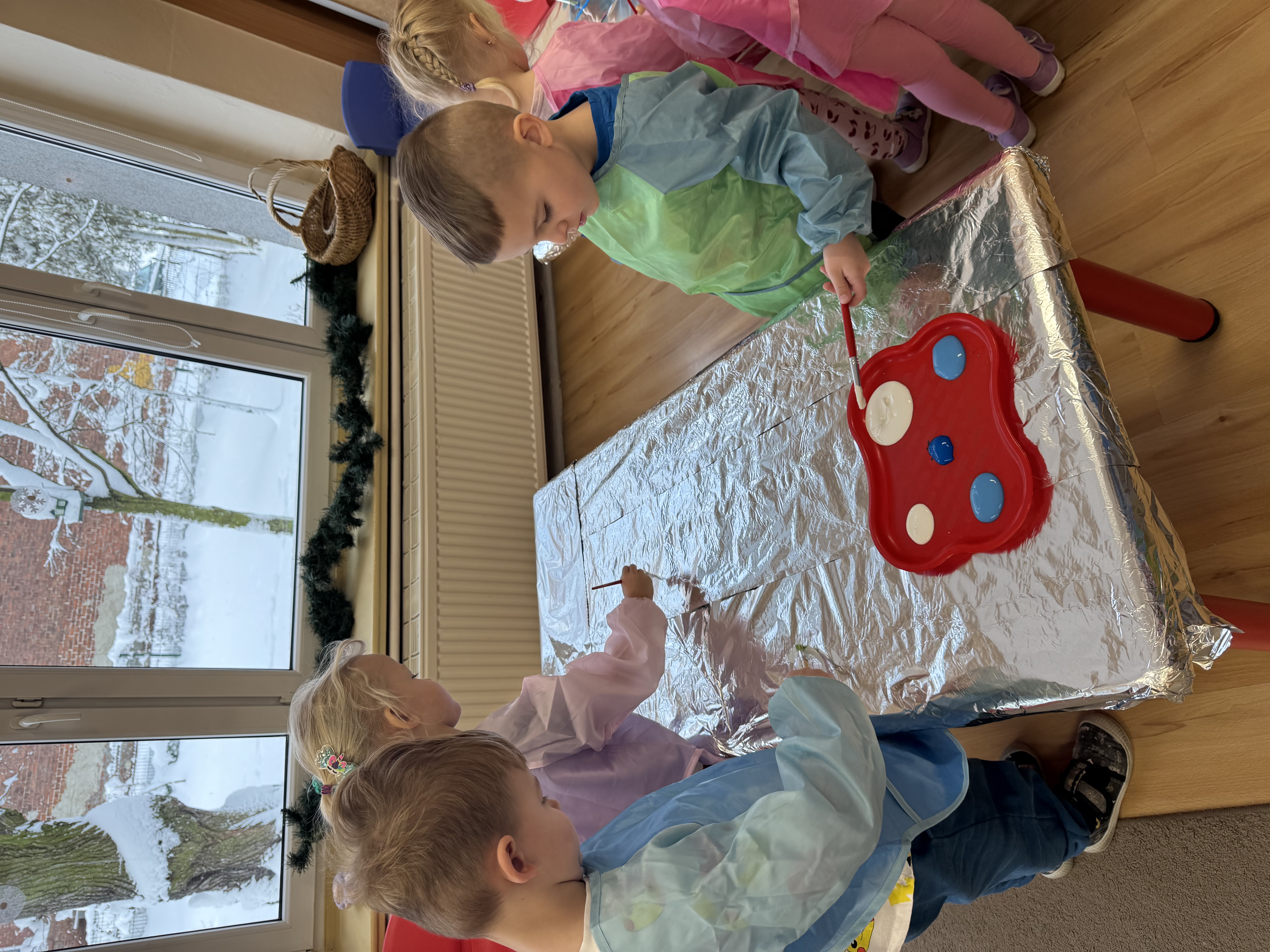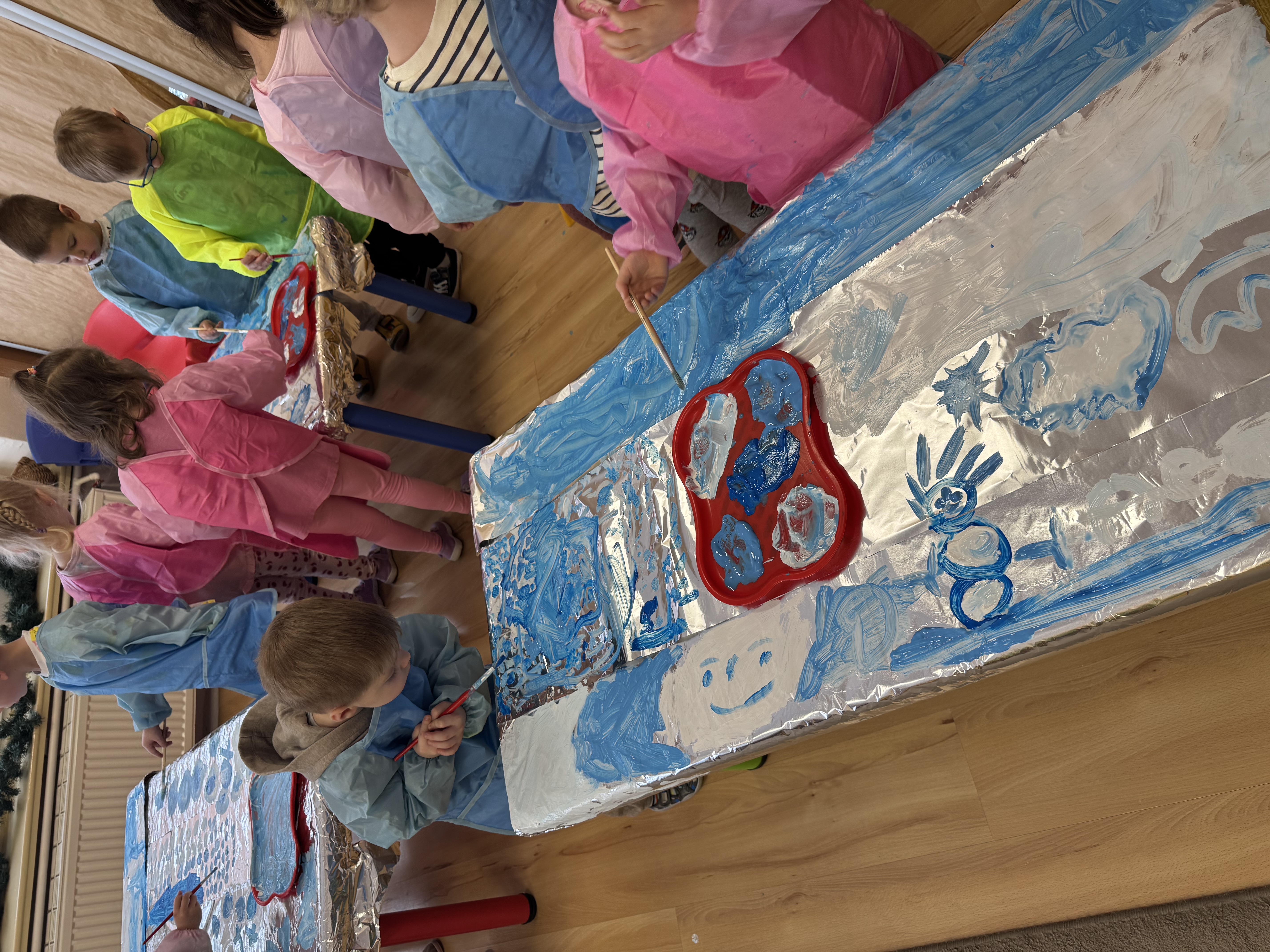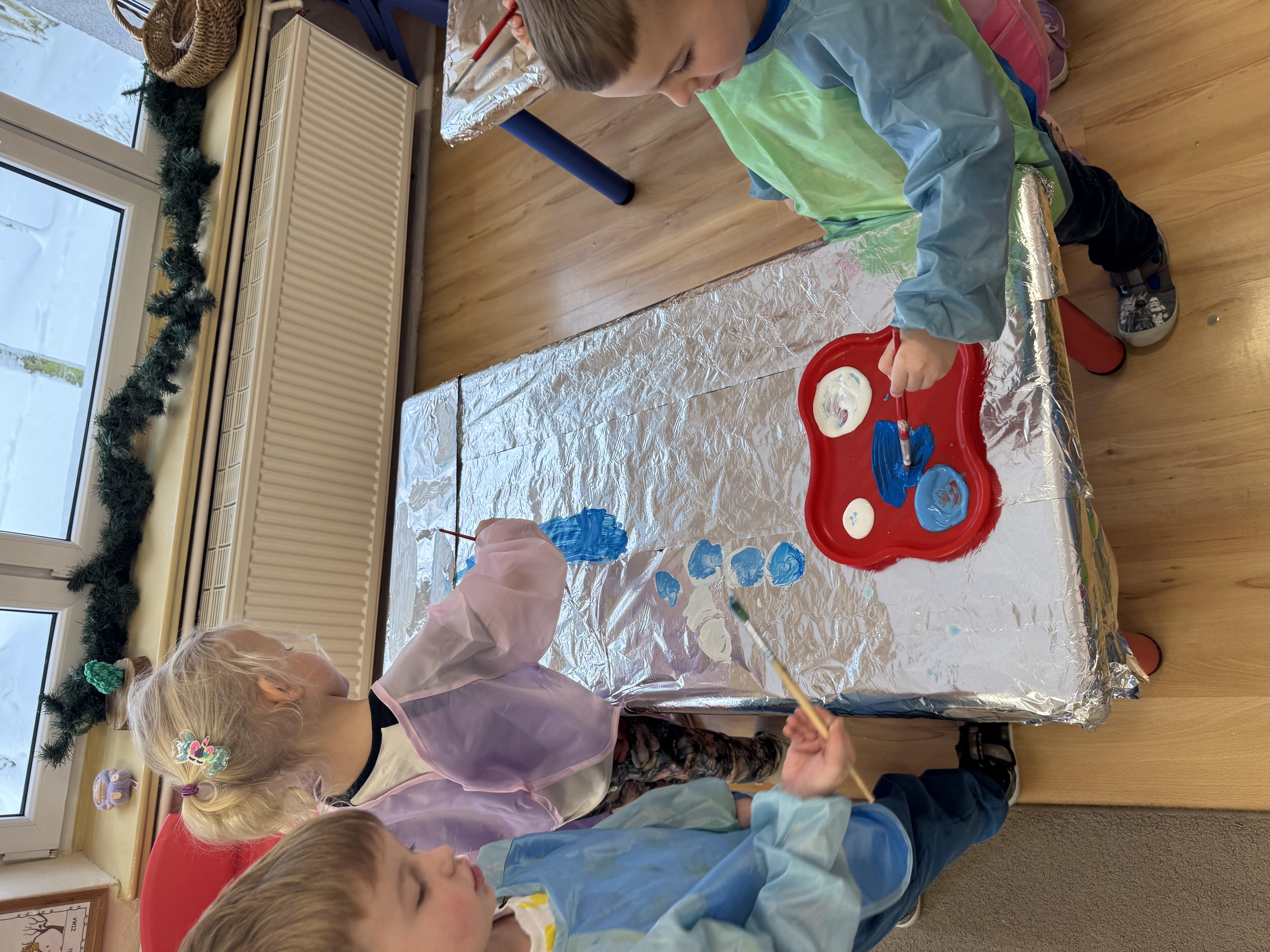 „Zimowy krajobraz”- malowanie farbami na folii aluminiowej do muzyki Vivaldiego „Zima”