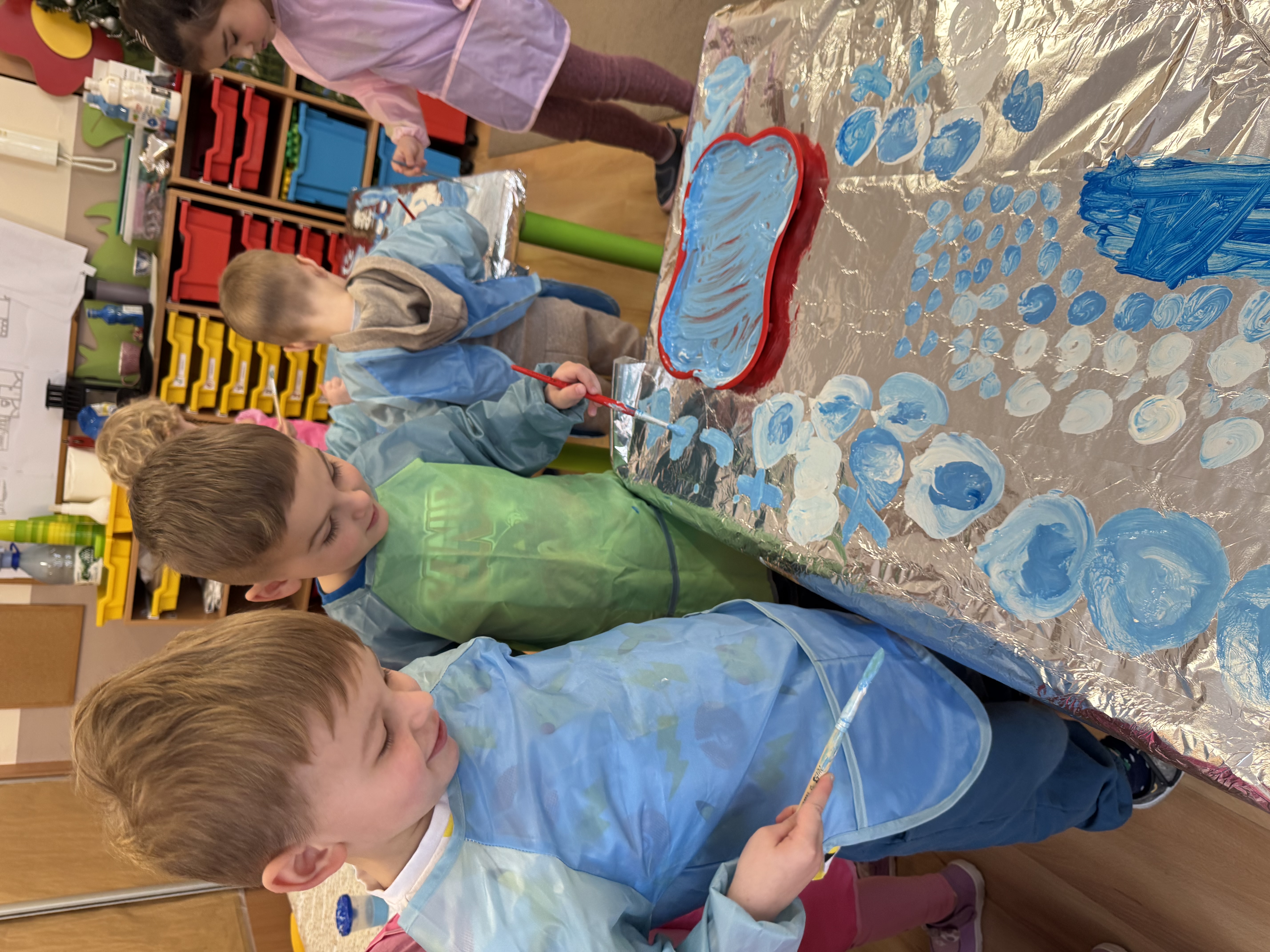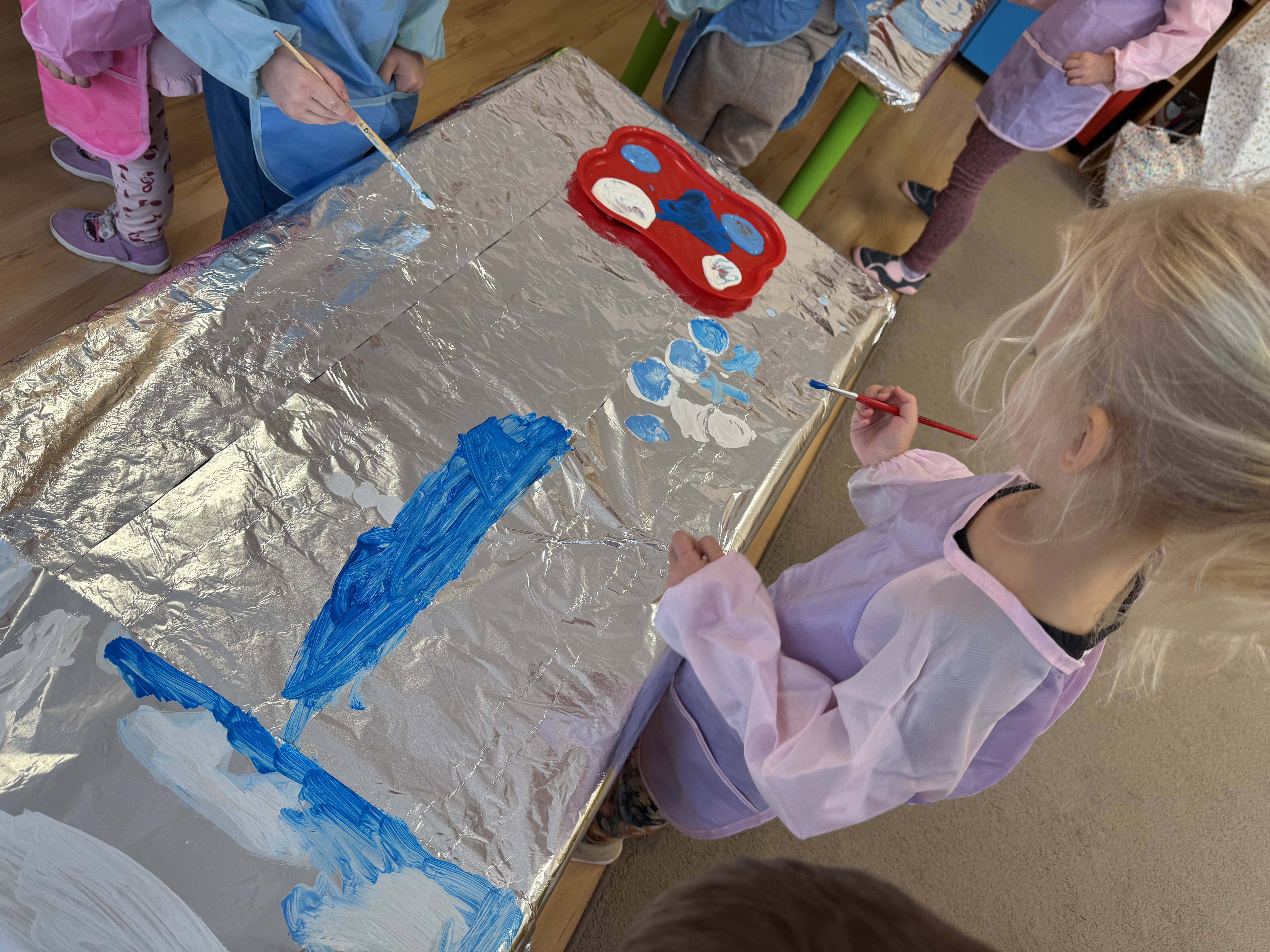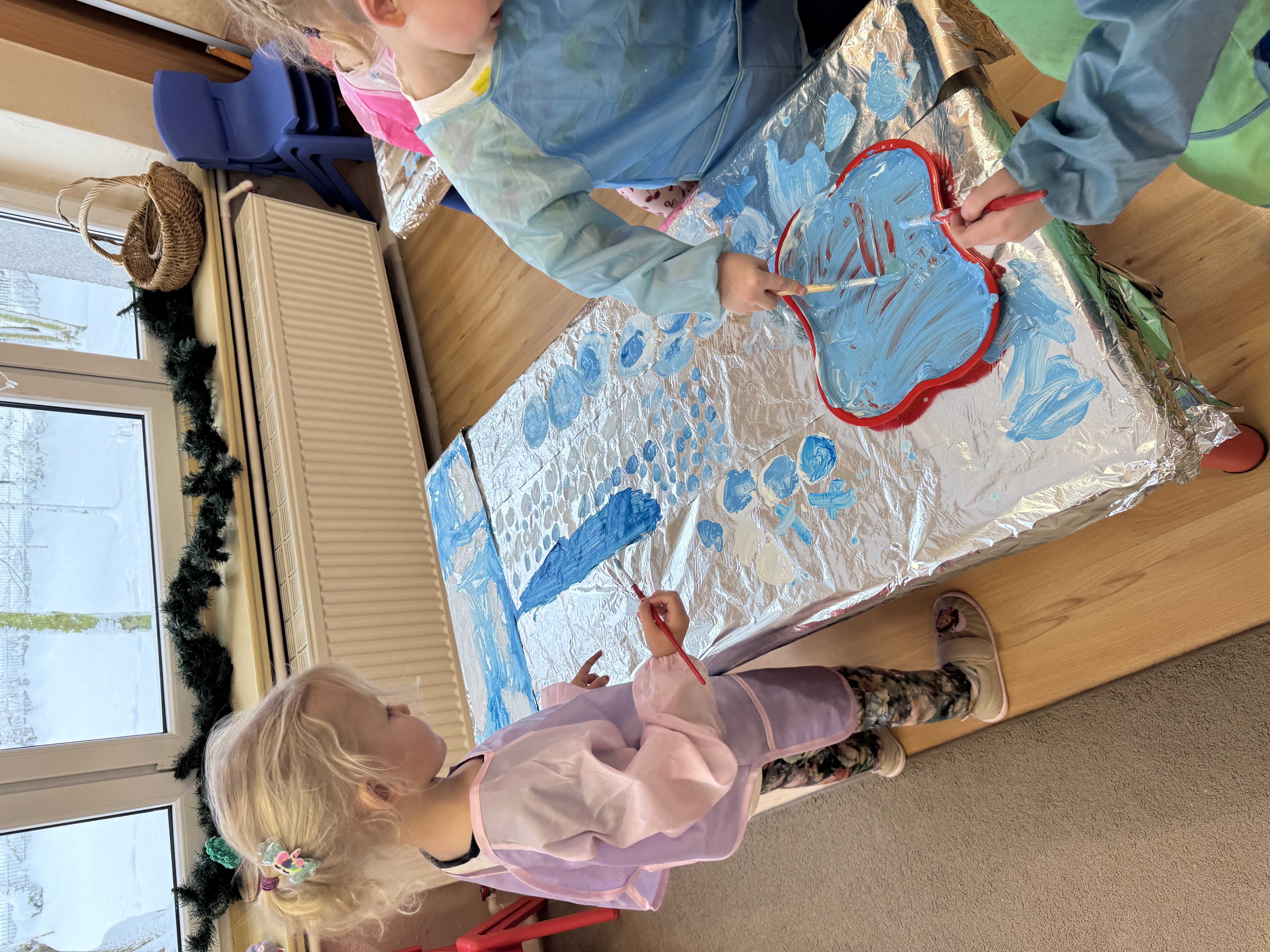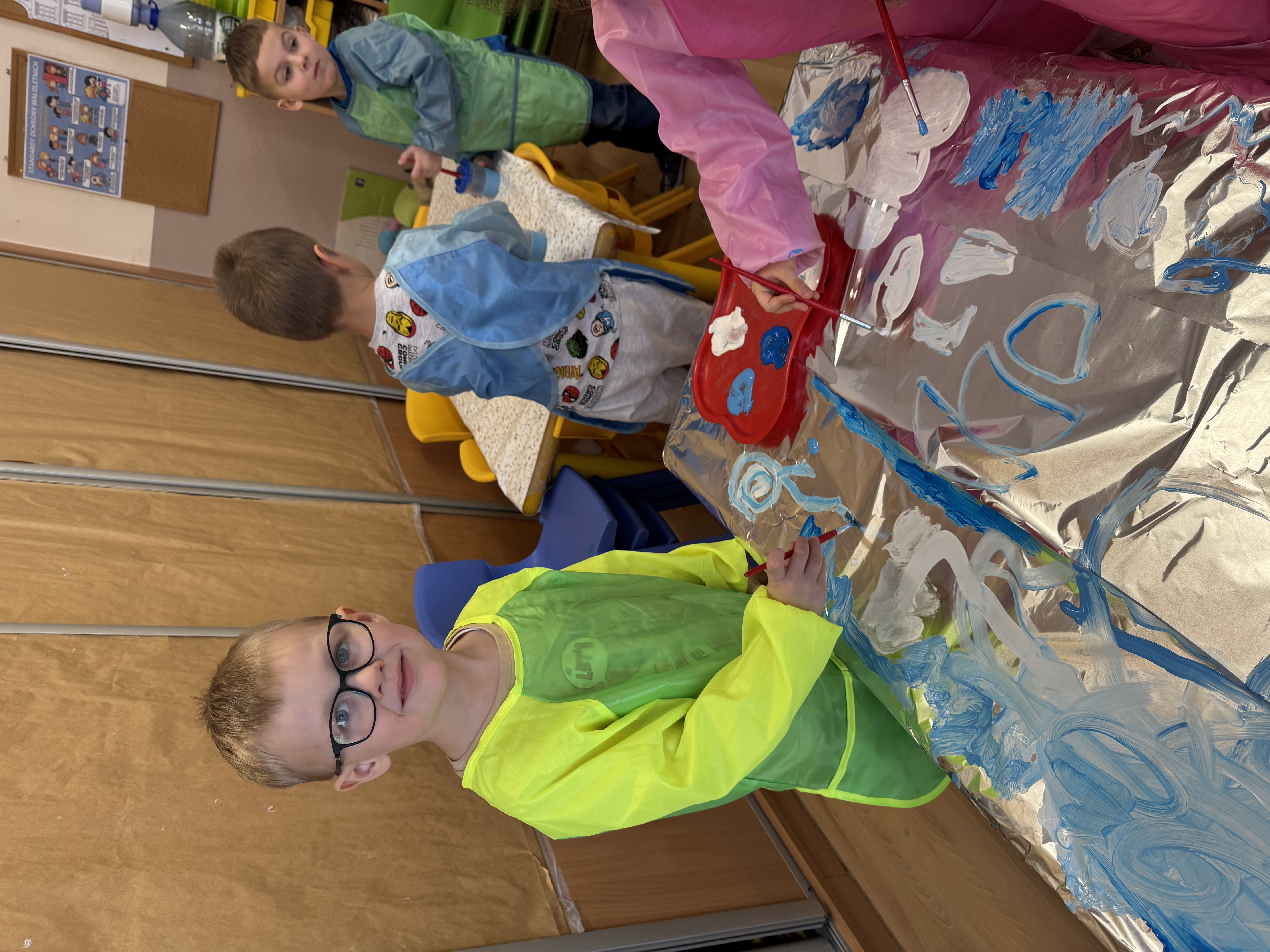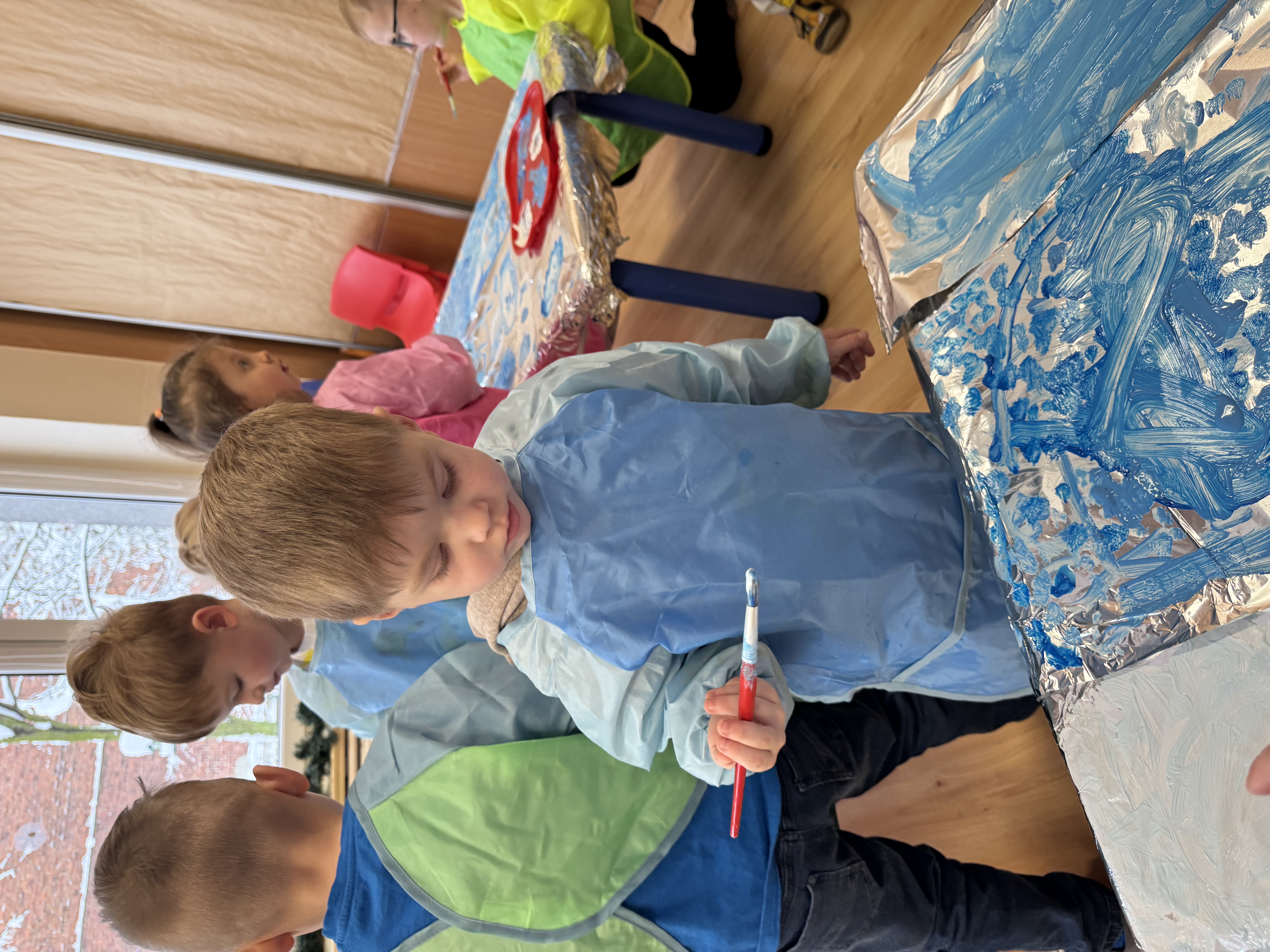 „Zimowy krajobraz”- malowanie farbami na folii aluminiowej do muzyki Vivaldiego „Zima”
